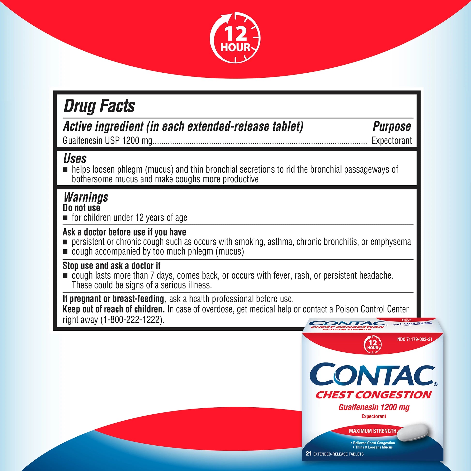 - POWERFUL, MAXIMUM STRENGTH CHEST CONGESTION RELIEF: Contac Chest Congestion is specially formulated to provide fast and effective relief from chest congestion and thins and loosens mucus
