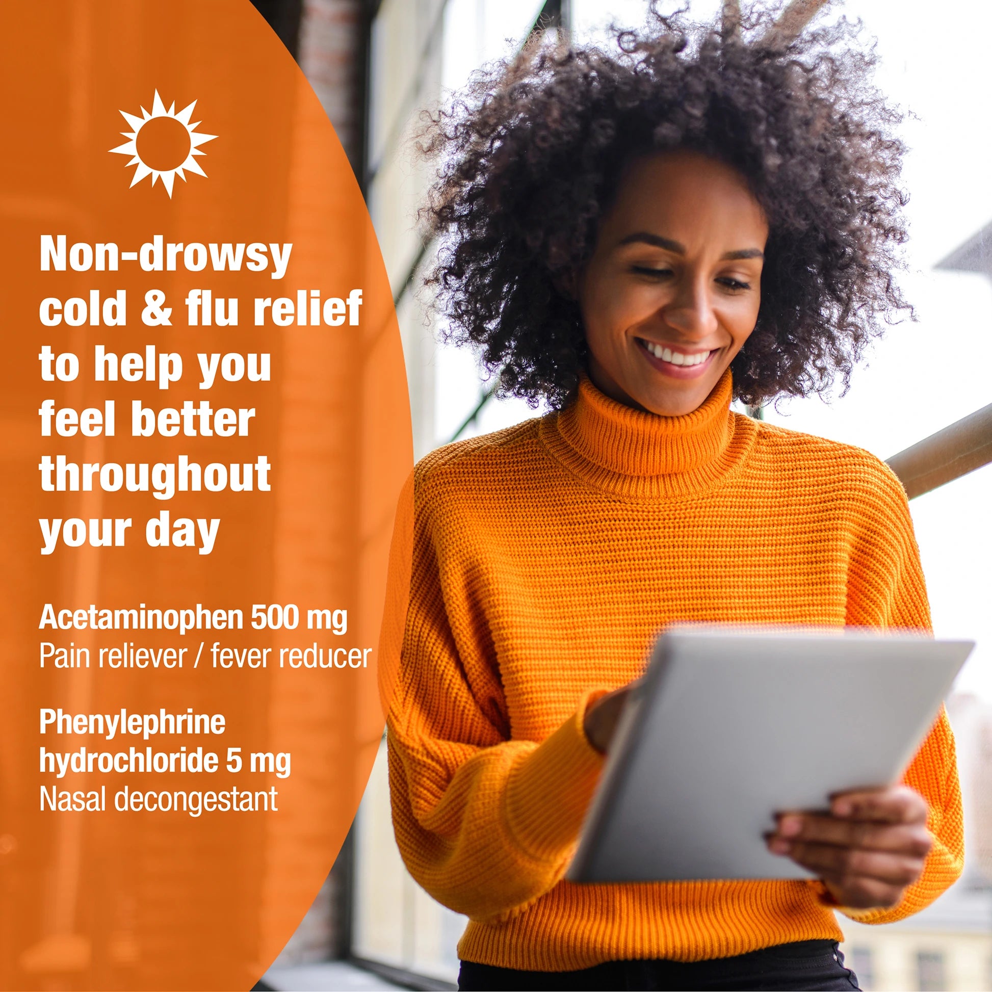 - NON-DROWSY, DAYTIME RELIEF: Our severe cold & flu medicine provides symptom relief without making you drowsy; Stay alert and active throughout your day