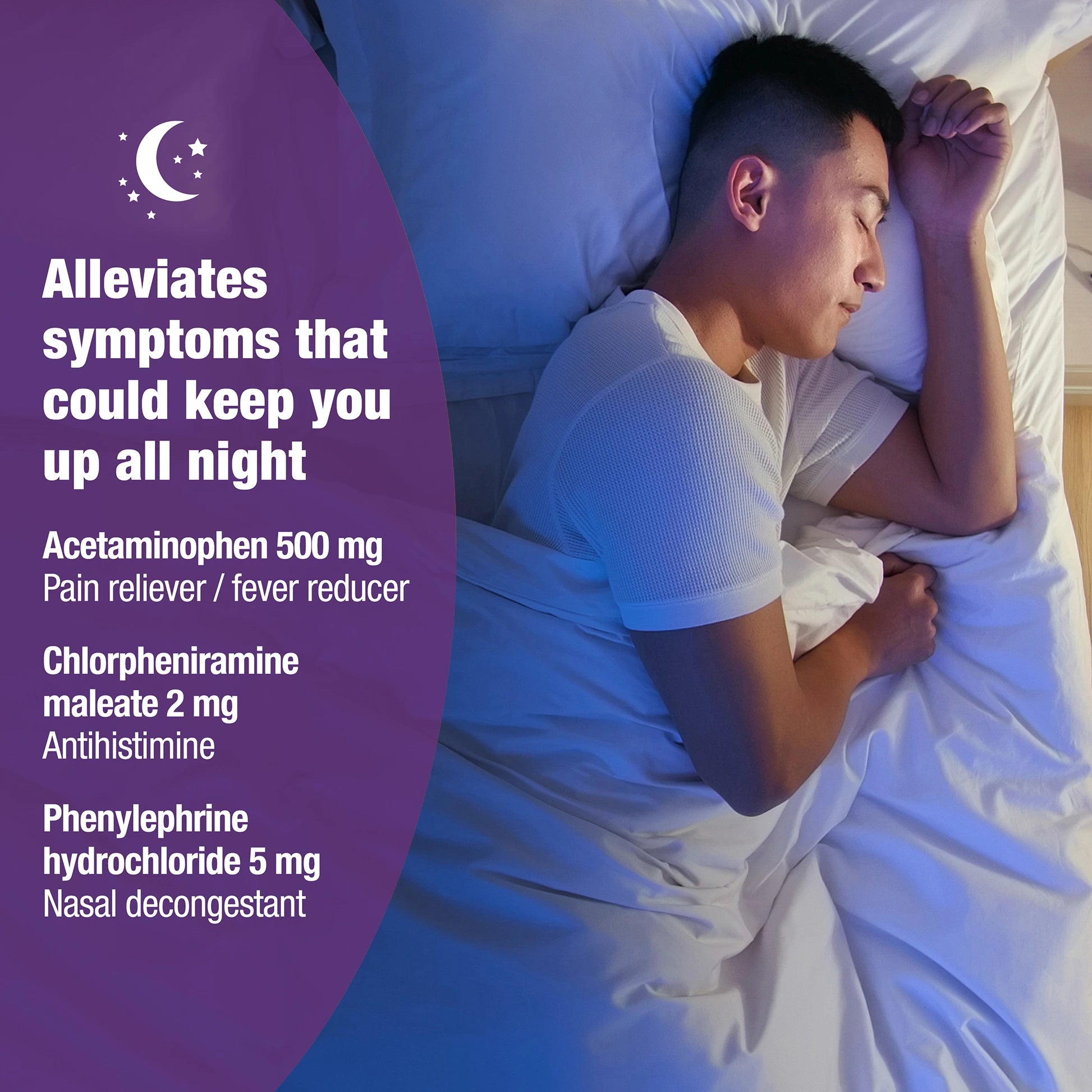 - 24-HOUR RELIEF: Feel better and stay alert by using our daytime formula with Phenylephrine HCI a nasal decongestant to ease congestion and acetaminophen a pain reliever/fever reducer to relieve minor aches, pains and sore throat; get some rest at night with our nighttime formula that also contains Chlorpheniramine maleate an antihistamine to ease your symptoms overnight